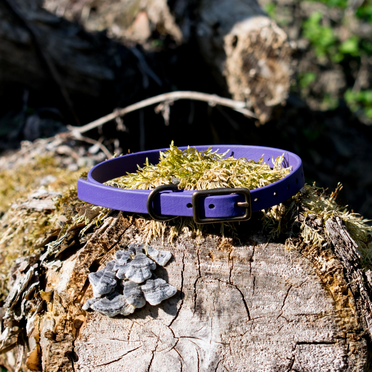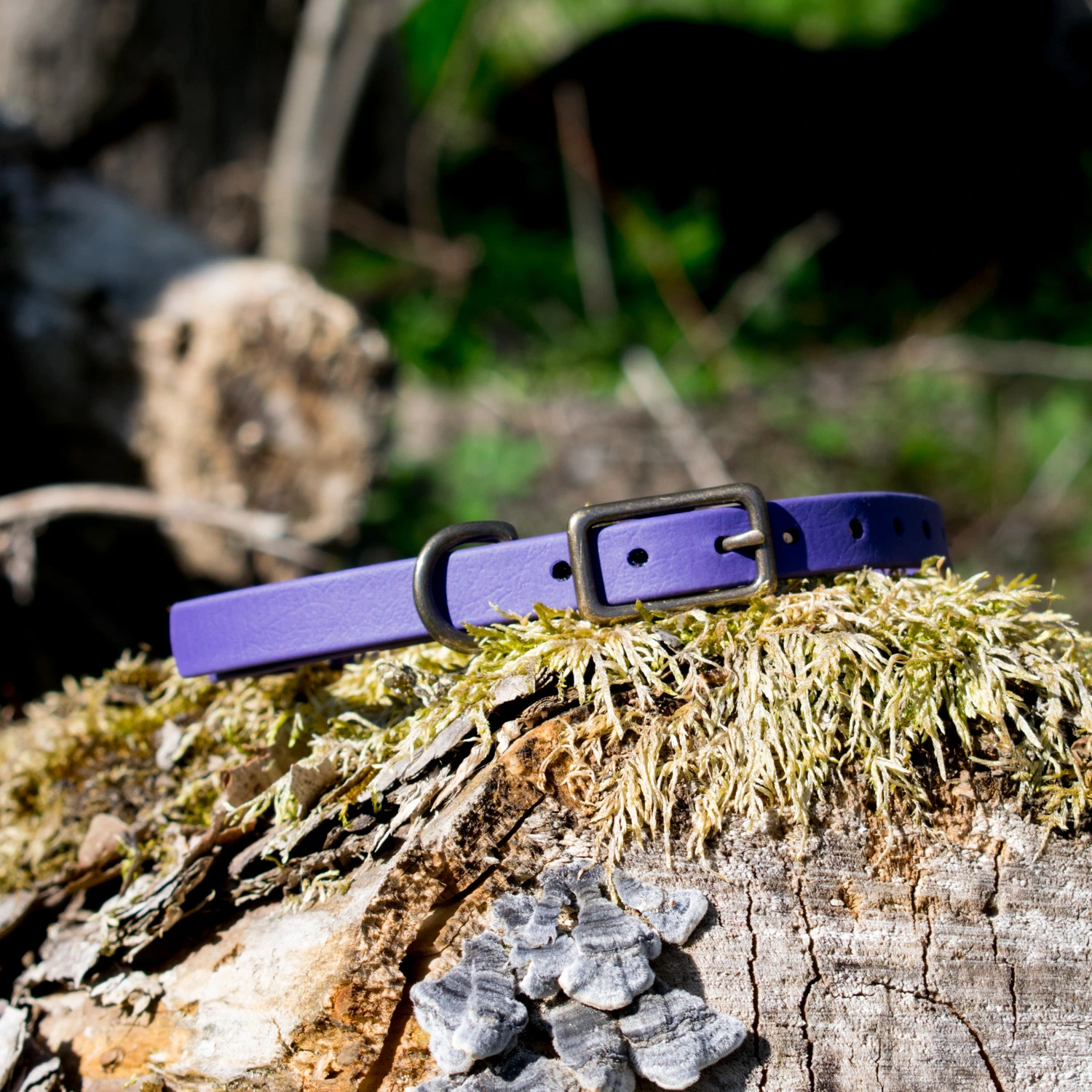 Our flat buckle biothane collars are simple and gorgeous! 1/2 inch biothane with a flat buckle and D-ring for tags and leash snaps. Four gorgeous hardware colors. Endless biothane colors. Washable, stink proof, and durable, biothane is the best choice for adventure dogs! *if your dog requires larger than giant sizing, please select the giant size, and add the actual measured neck size of your dog in the order notes.*