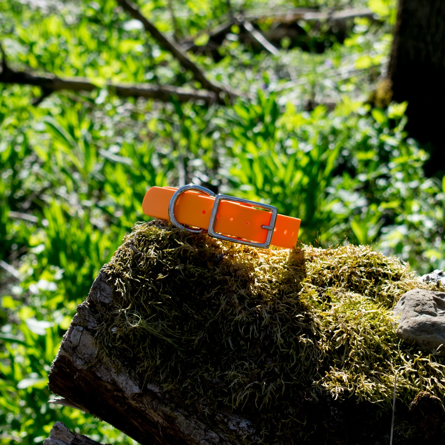 Our flat buckle biothane collars are simple and gorgeous! 1 inch biothane with a flat buckle and D-ring for tags and leash snaps. Four gorgeous hardware colors. Endless biothane colors. Washable, stink proof, and durable, biothane is the best choice for adventure dogs! *if your dog requires larger than giant sizing, please select the giant size, and add the actual measured neck size of your dog in the order notes.*