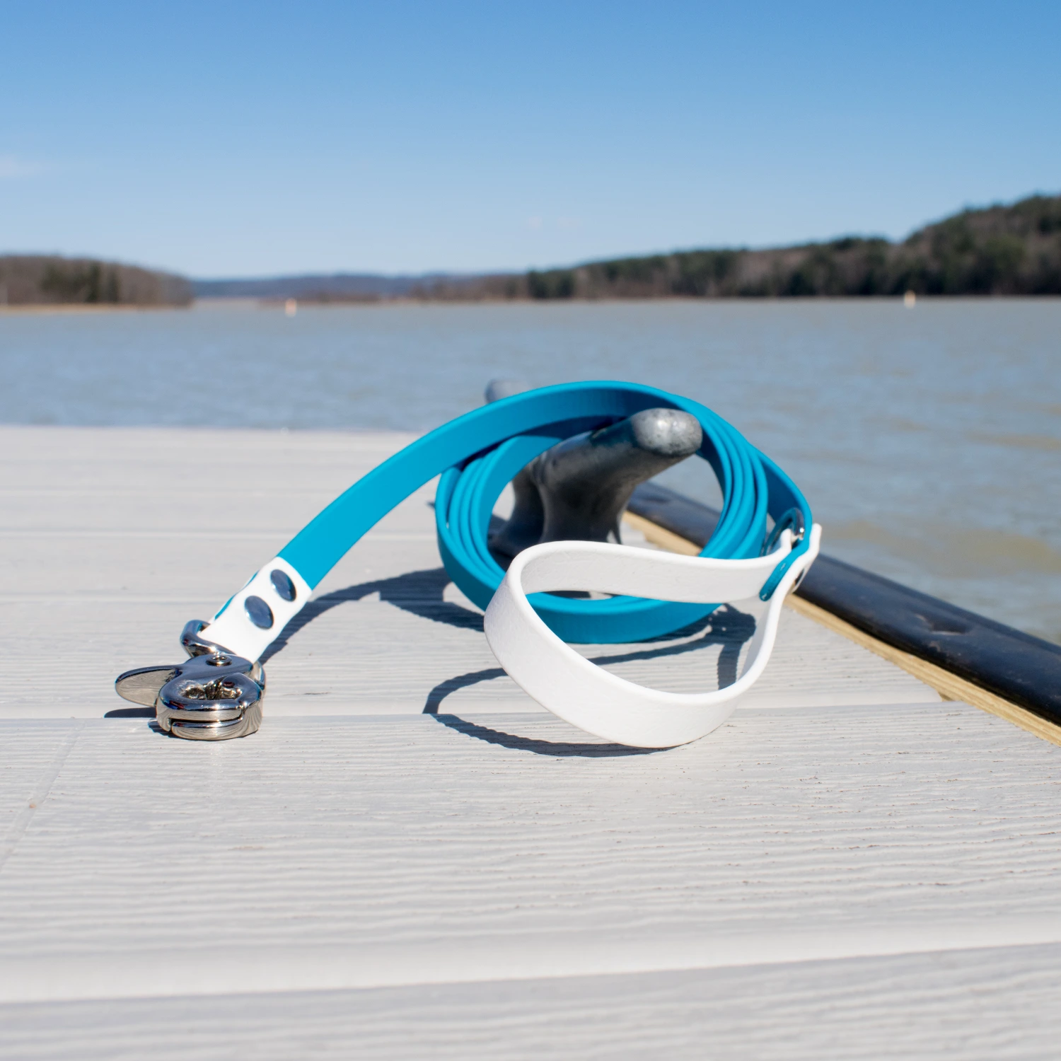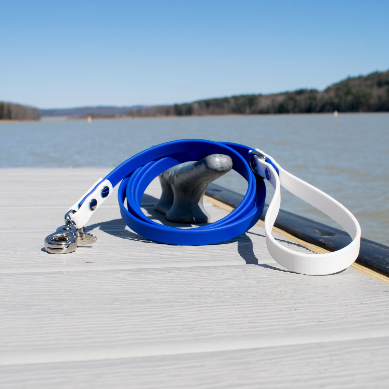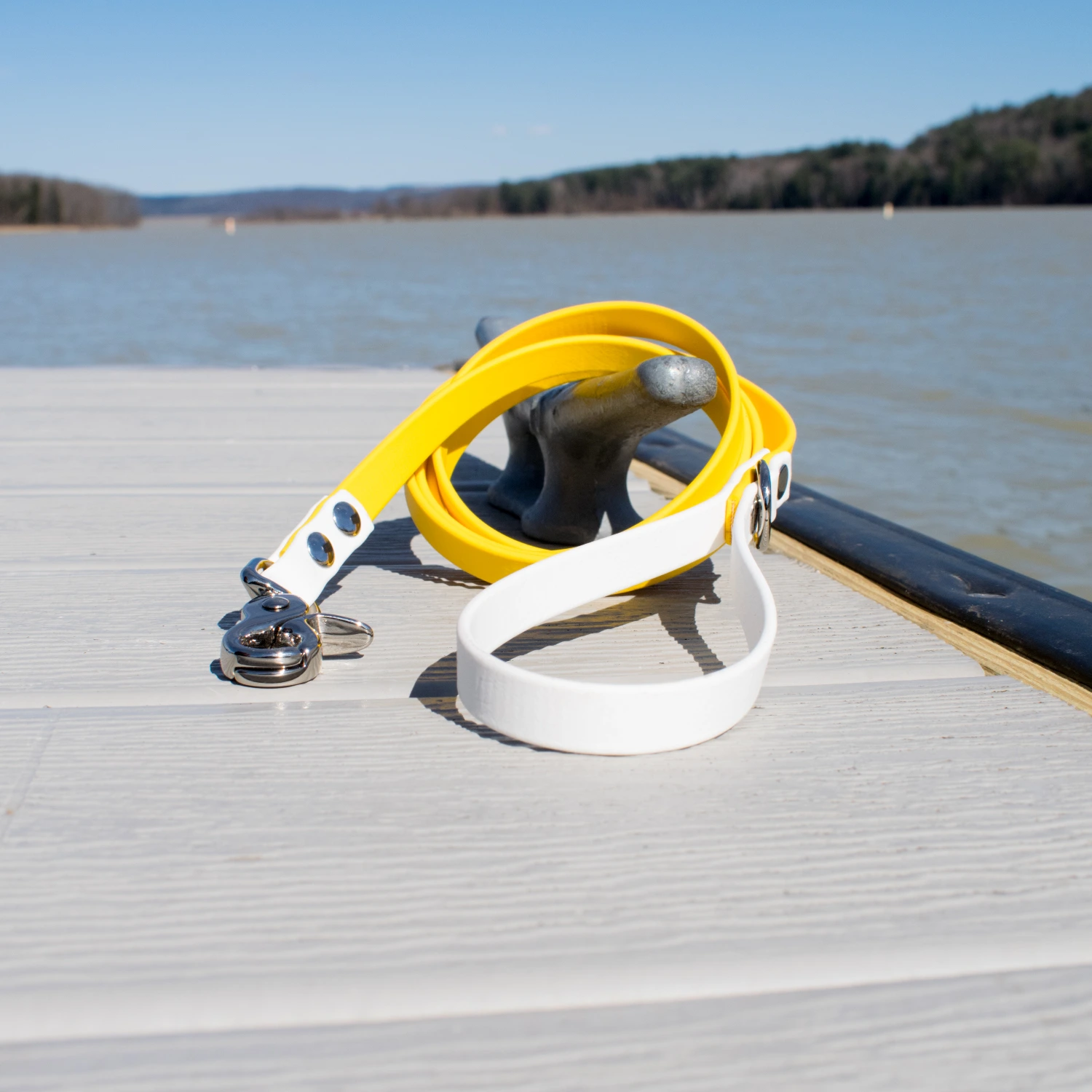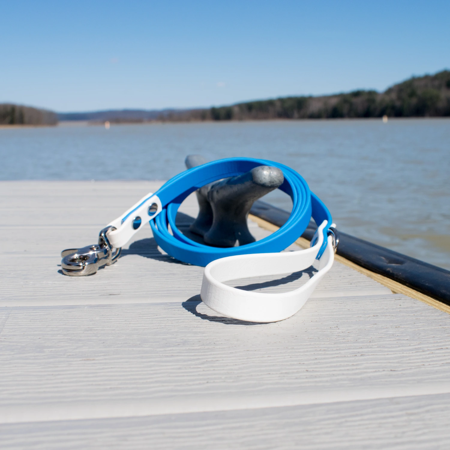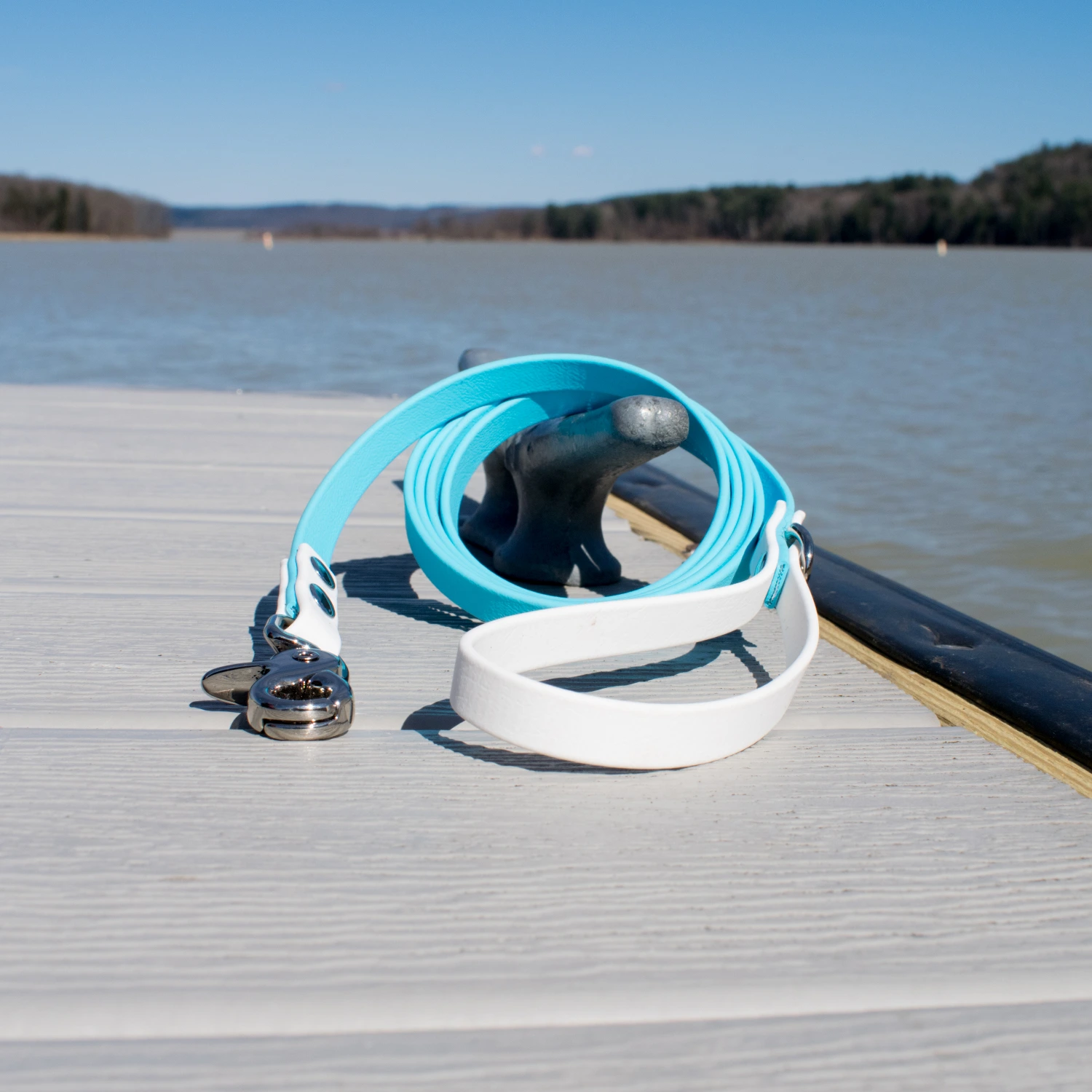 The by the sea collection is a classic leash in some of our favorite summery sunshine biothane colors! Choose from sky blue, teal blue, ocean blue, electric blue, and yellow biothane colors that come standard with white accents and silver hardware. These leashes come in 3 sizes to fit your needs! ½ inch biothane with a trigger snap and mini D-ring on the handle. Washable, stink proof, and durable, biothane is the best choice for adventure dogs!