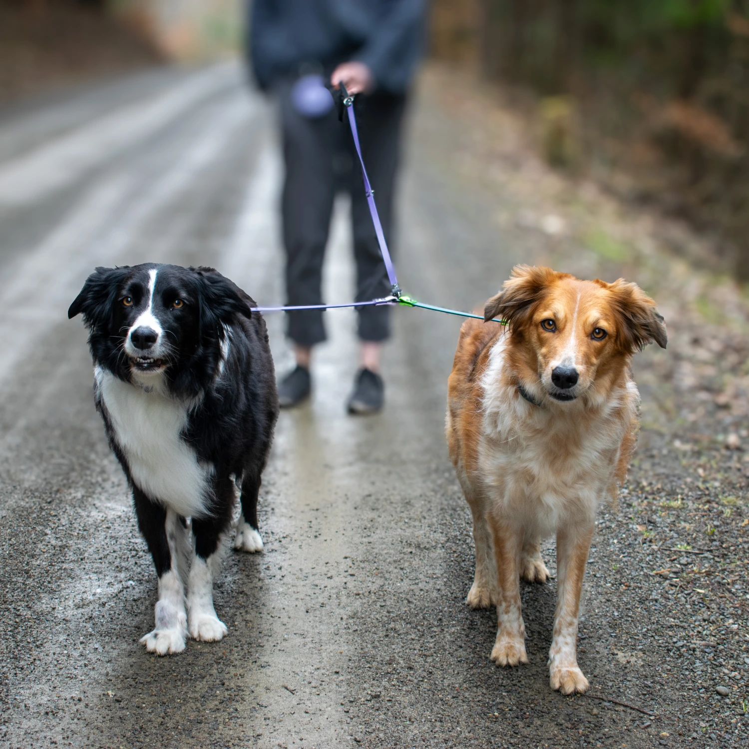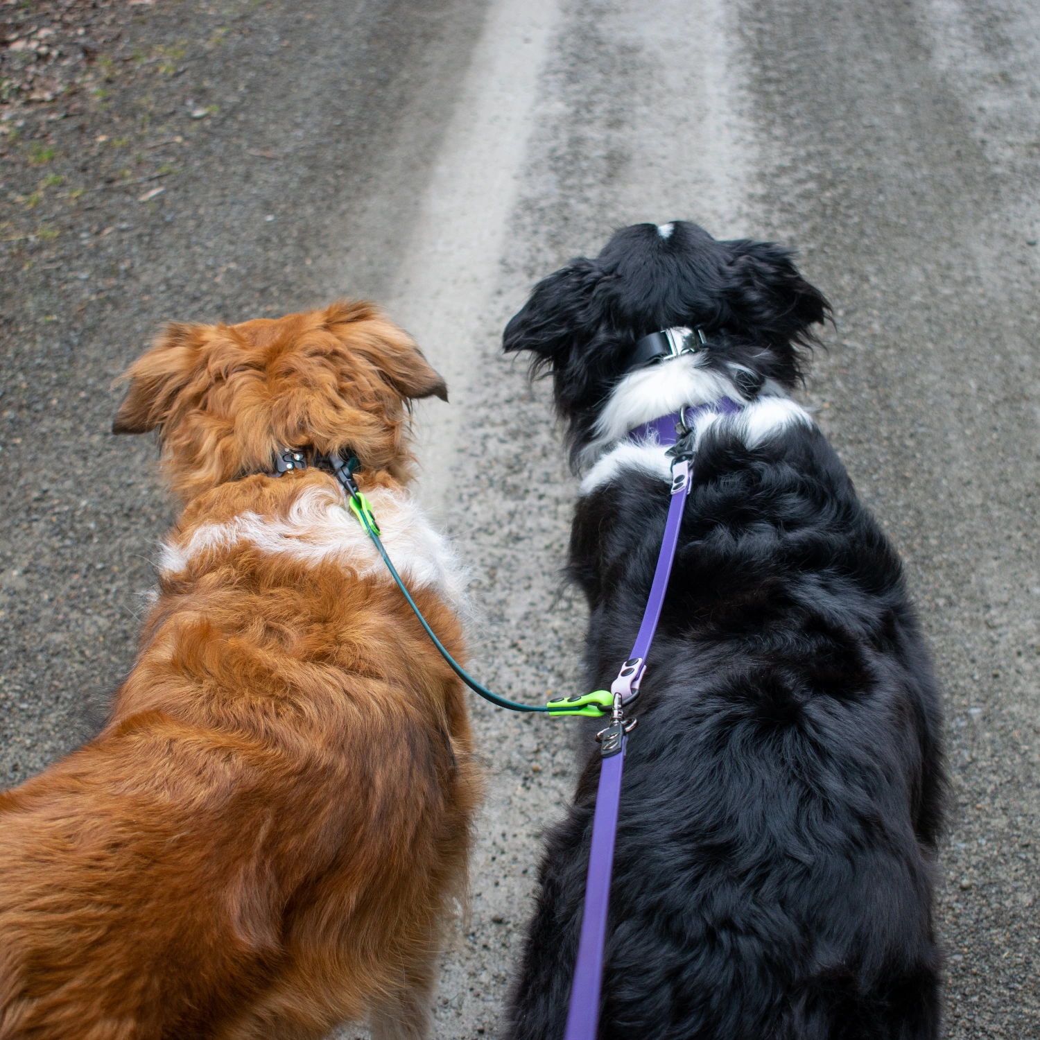 A leash splitter for easy two dog walking; an add on for the basic leash! ½ inch biothane with standard multi color options and trigger snaps. Clip a leash to the O-ring and you’re off with your two pups! Four gorgeous hardware colors. Endless color combos. Washable, stink proof, and durable, biothane is the best choice for adventure dogs!