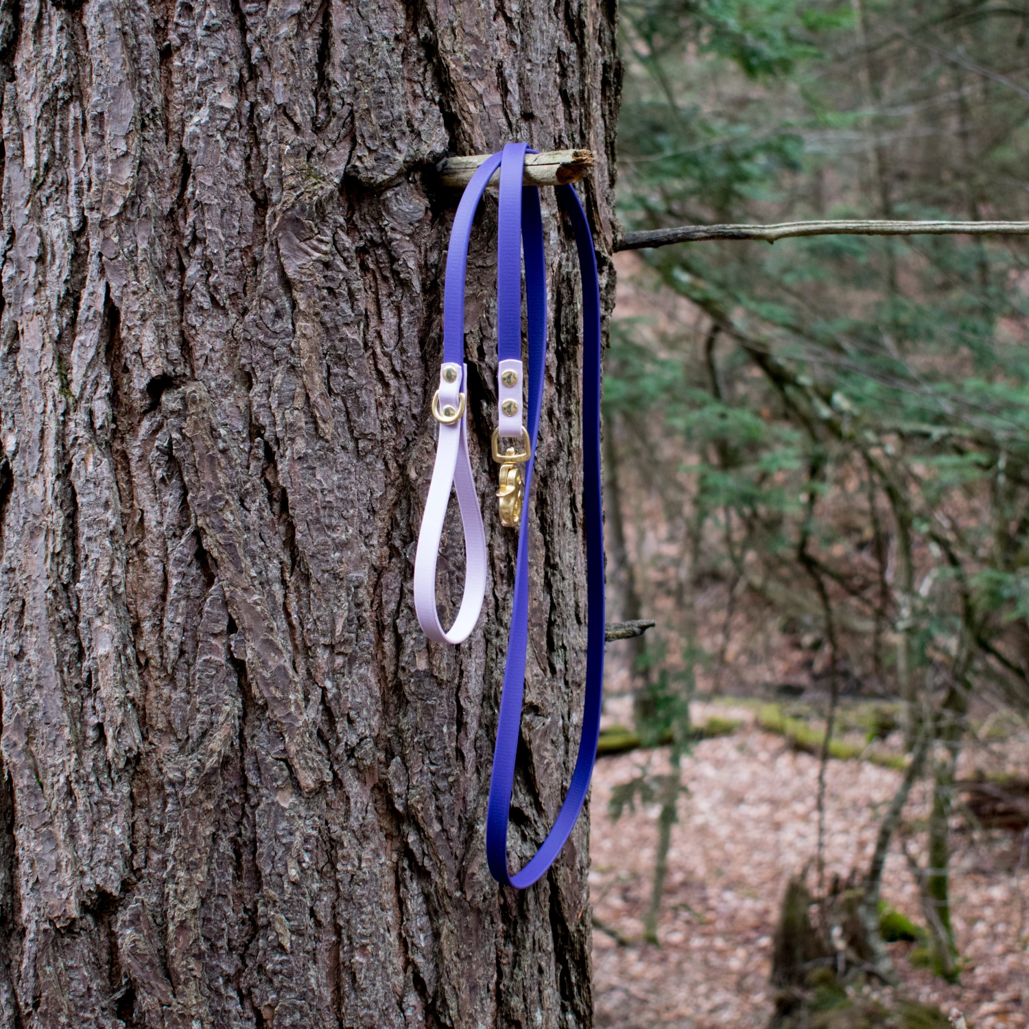 Our leashes come in 3 sizes to fit your needs! ½ inch biothane with a standard two-tone color option, trigger snap, and mini D-ring on the handle. Four gorgeous hardware colors. Endless color combos. Washable, stink proof, and durable, biothane is the best choice for adventure dogs!