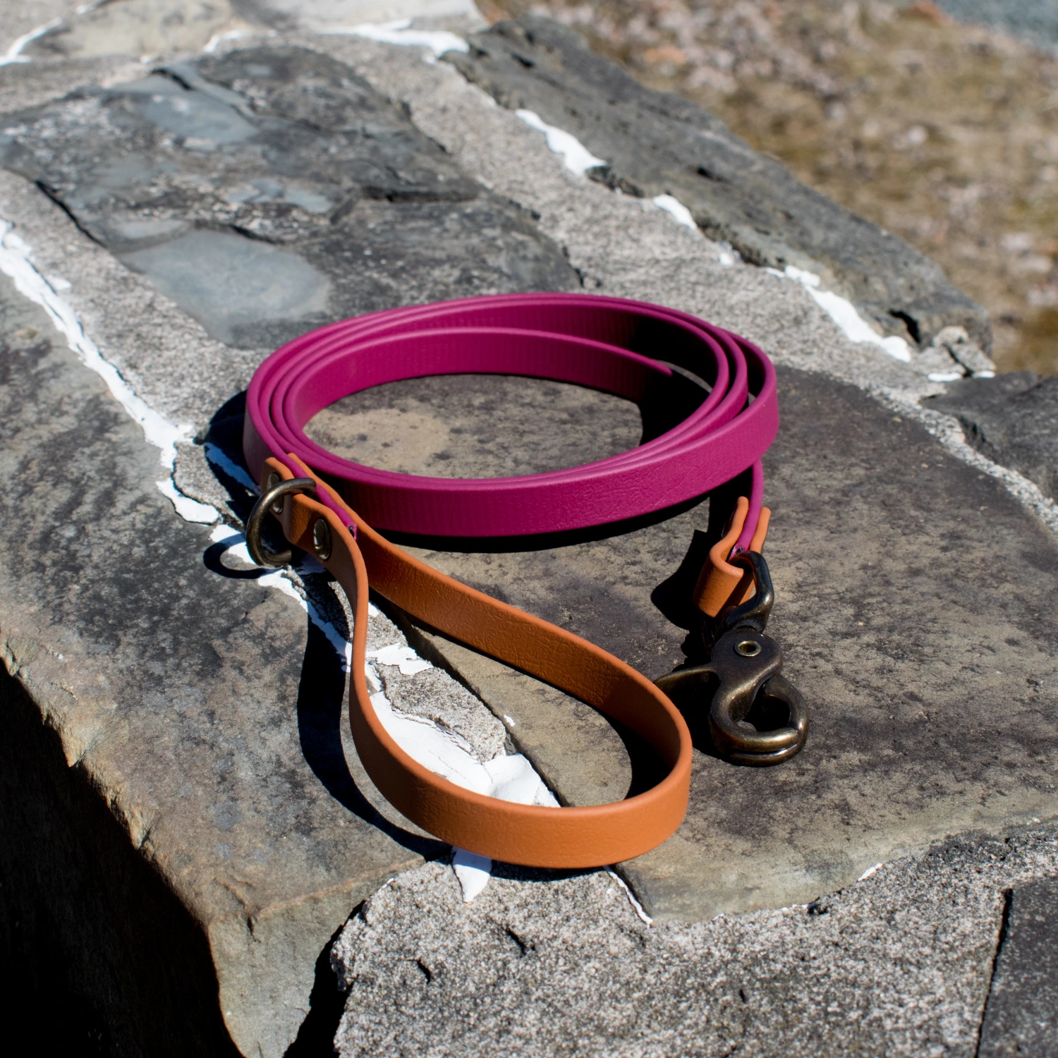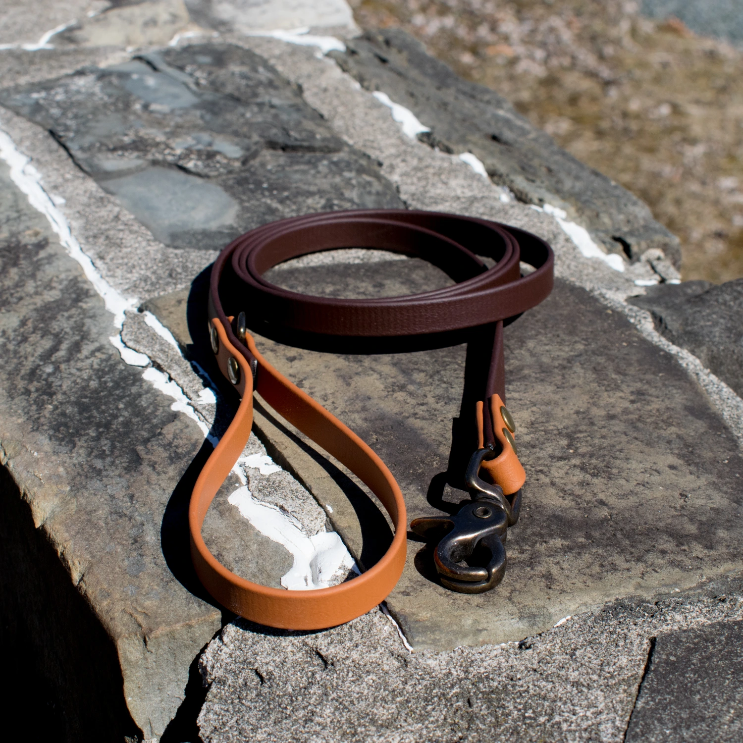 The old money collection is a classic leash in some of our favorite rich and classy biothane colors! Choose from wine, hunter, navy, black, and chocolate biothane colors that come standard with canyon accents and antique hardware. These leashes come in 3 sizes to fit your needs! ½ inch biothane with a trigger snap and mini D-ring on the handle. Washable, stink proof, and durable, biothane is the best choice for adventure dogs!
